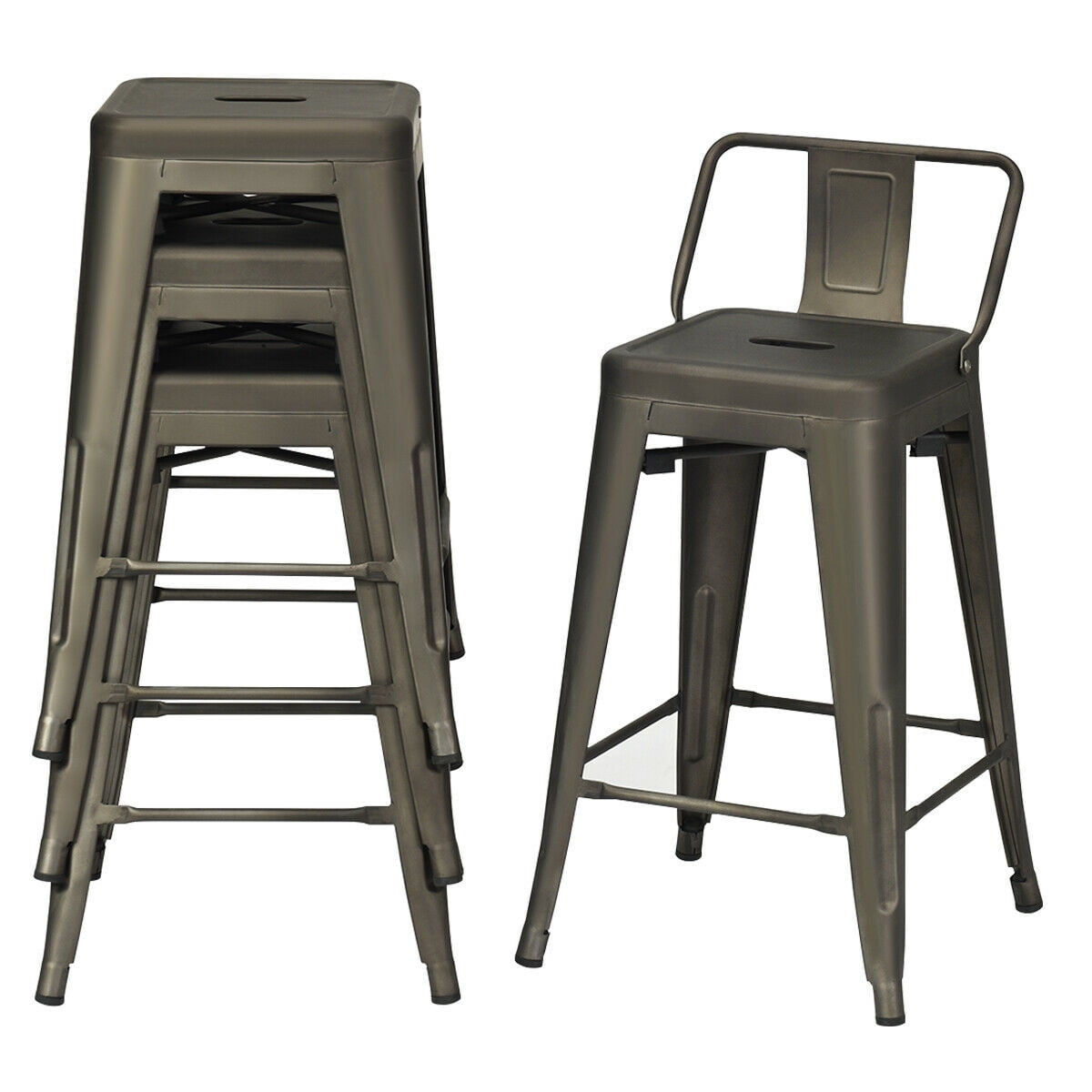 Costway Set Of 4 Metal Bar Stools 30 Bar Height Barstools Industrial W Low Back Gun Walmart Com Walmart Com from i5.walmartimages.com No home bar or breakfast bar is complete without bar stools. Find the best swivel bar stools & counter stools for your home in 2021 with the carefully curated selection available to shop at houzz. Check out our extensive customizable seat and frame finish options. Counter height bar stools made from stamped sheet metal are the perfect match for industrial interiors, adding a retro yet modern flair. Metal counter stools with backs provide a comfortable sitting experience, the full back is ergonomically curved and includes a vertical slat. The lower support braces double as a footrest, promoting proper posture and an improved sitting experience. Stylish bar stools provide a sense of authenticity and comfort to your home bar or kitchen counter experience. With our wide selection at value city, you are guaranteed to find something that matches you